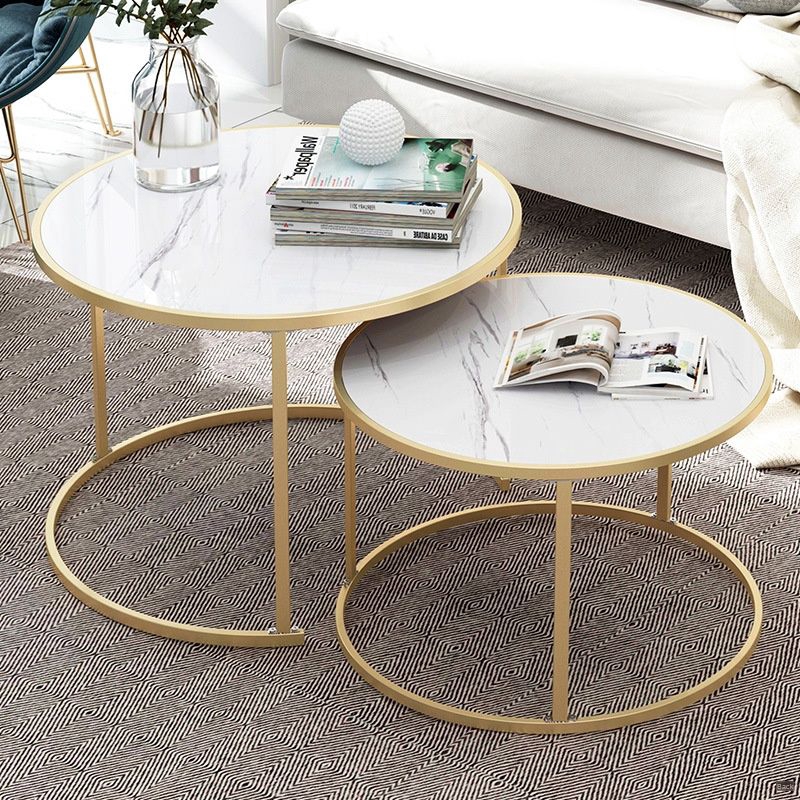 2pcs Round Coffee Tea Table Set With Marble Effect Metal Frame Side Table Movable End Table For Living Room Office Furniture Coffee Tables Aliexpress