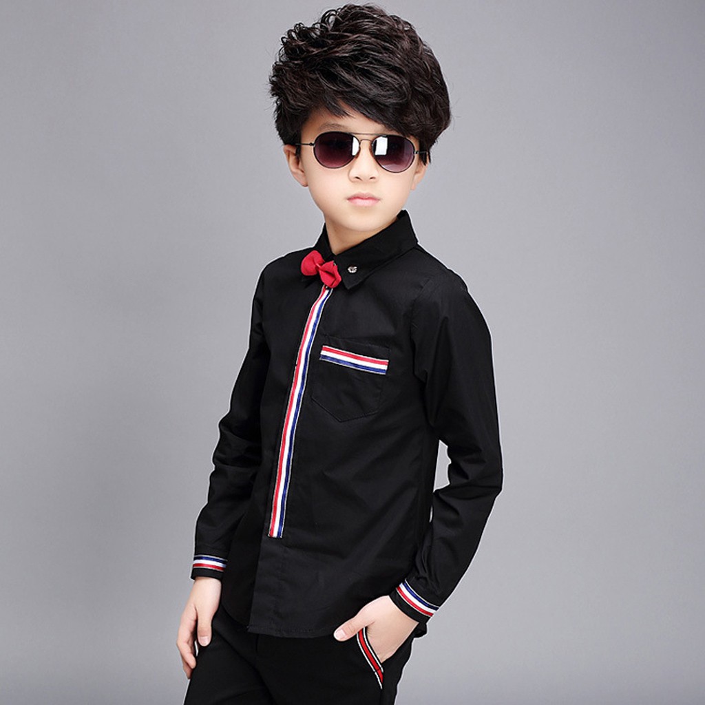 Navy Style Boys Dress Shirts Kids Striped Wedding Shirts With Bowtie Boys Shirts Shopee Malaysia