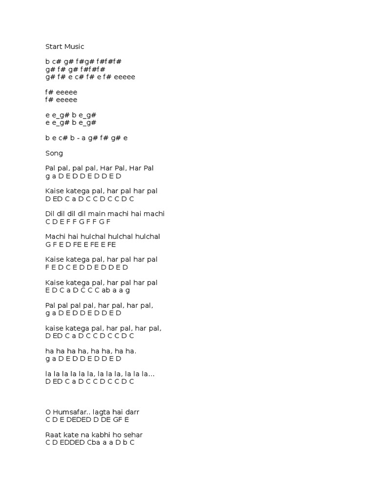 Pal Pal Pal Pal Har Pal Piano Notes